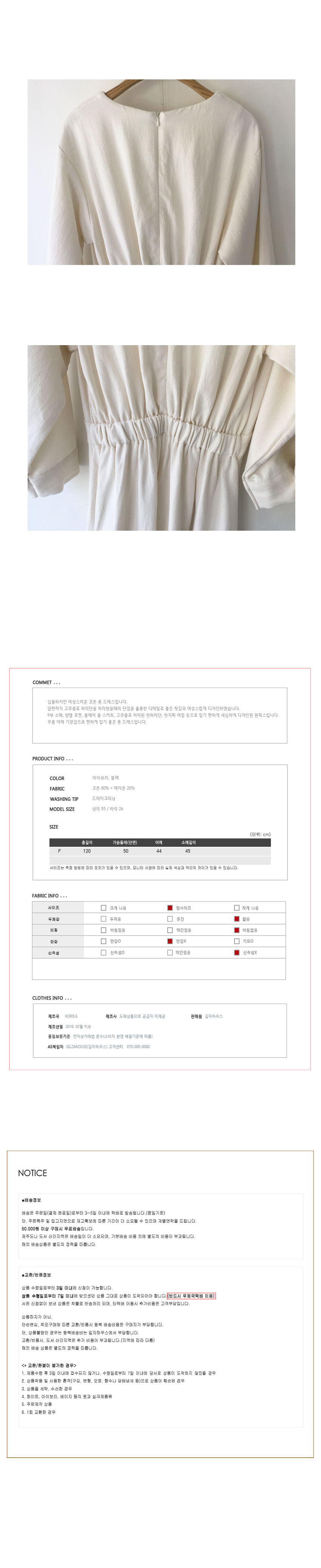 [2018 S/S NEW ITEM] cotton 혼방 Free(단면): 가슴둘레 50cm, 어깨 44cm, 소매 45cm, 총장 120cm