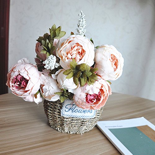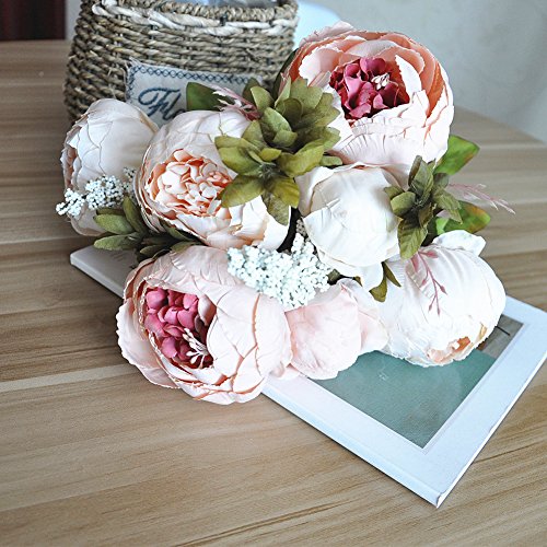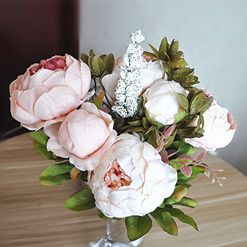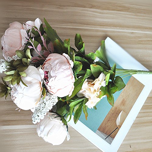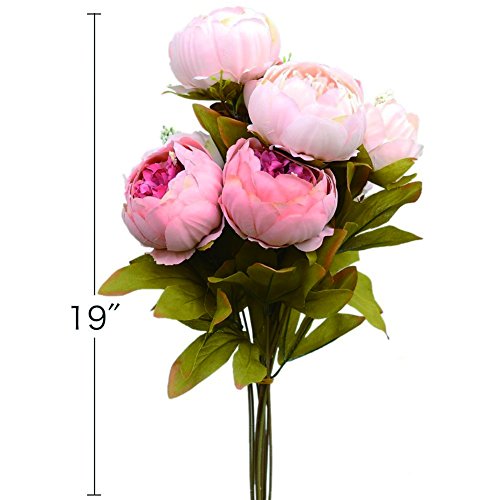 Shine-Co Artificial Peony Silk Flowers Bouquet Glorious Moral for Home Office Parties and Wedding (light pink)