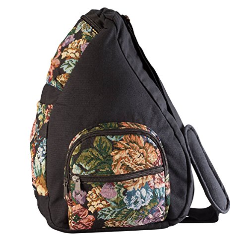 Studio : Miles Kimball Publisher : Miles Kimball Binding : Apparel Product Description Our Kimberly Tapestry UrGo Bag keeps you organized without cramping your style. This fashionable tapestry handbag is loaded with pockets and compartments, yet lightweight for handsfree travel, shopping and more. The ergonomic teardrop shape conforms to your body, easing stress on your neck, back and shoulders. Exterior features an adjustable padded strap for crossbody or shoulder carry, 5 zip pockets, and an easyaccess pocket for a water bottle or glasses. Interior compartment features 2 zip pockets and 4 pen pockets. Crossbody bag measures 11" wide x 5" deep x 16 1/2" high overall; strap adjusts from 20"38" long. 75 cotton/25 polyester. Hand wash; line dry. 0