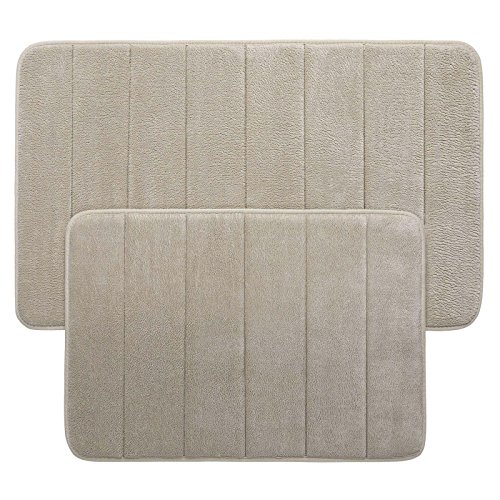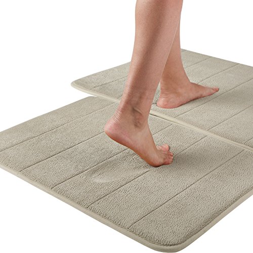 VEEYOO 17x24-Inch Coral Velvet Non-Slip Bath Mat Soft Absorbent Memory Foam Bath Shower Rug with Stripe, Beige