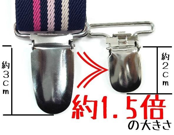 一般的なサスペンダークリップの約1.5倍もある大きいクリップが、しっかりとソファカバーをロックします!!最大約130cmぐらいまで伸びるので、少し大きめのソファでも対応可能。ズレ防止で素敵なソファカバーライフを楽しみましょう♪ |