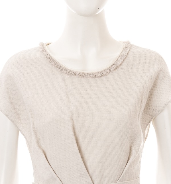 밋밋해 보일수 있는 넥 라인에 수술장식으로 포인트를 주었구요