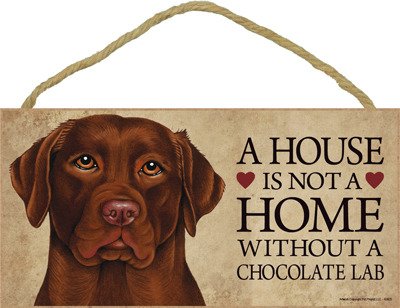 (SJT63925) A house is not a home without a Chocolate Lab wood sign plaque 5" x 10"