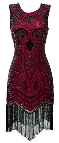eforpretty 1920's Long Prom Vintage Gatsby Bead Sequin Art Nouveau Deco Flapper Dress(Red,M)