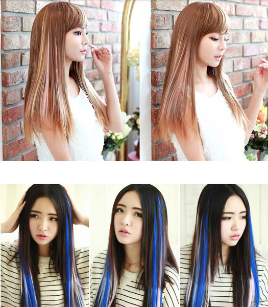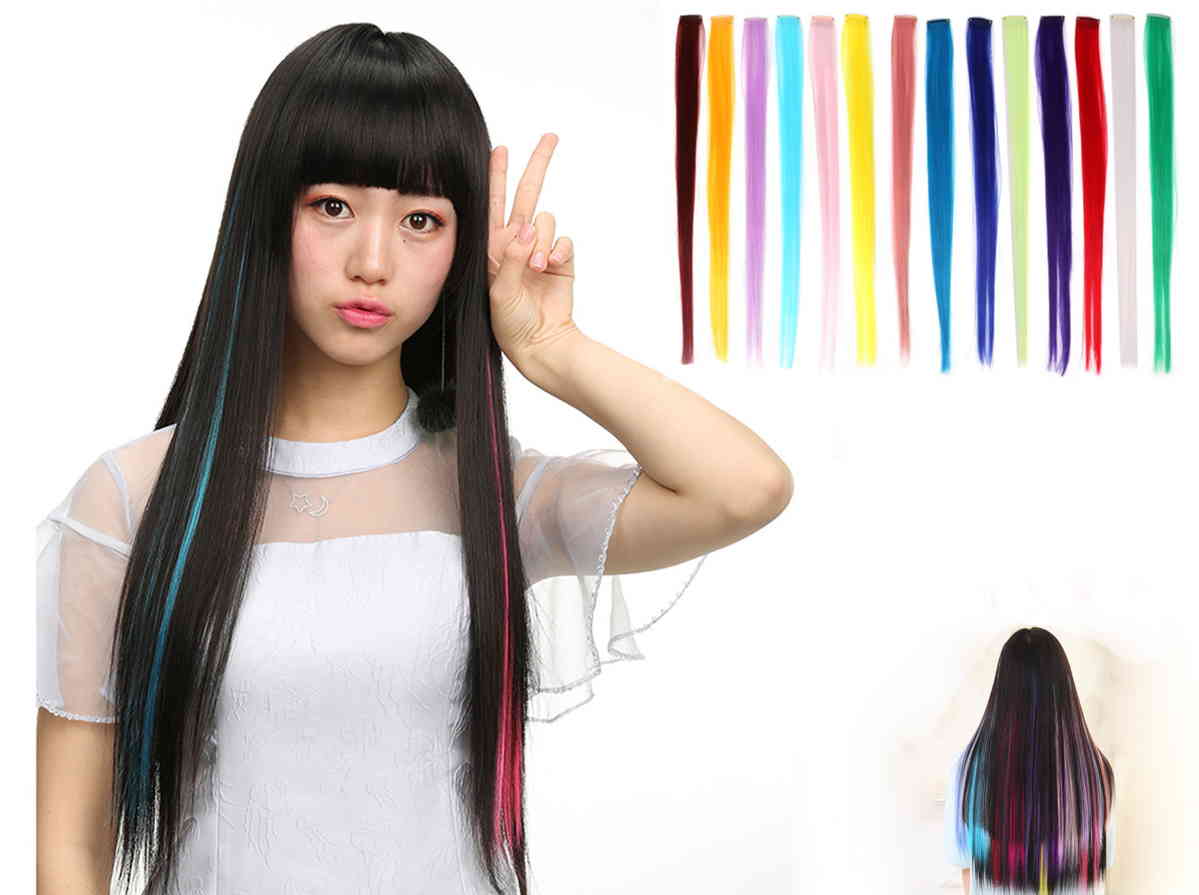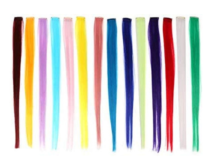 メッシュ ワンタッチ エクステ カラフル 14本セット エクステンション つけ毛 コスプレ イメチェン ctr-h14【1~2日発送】