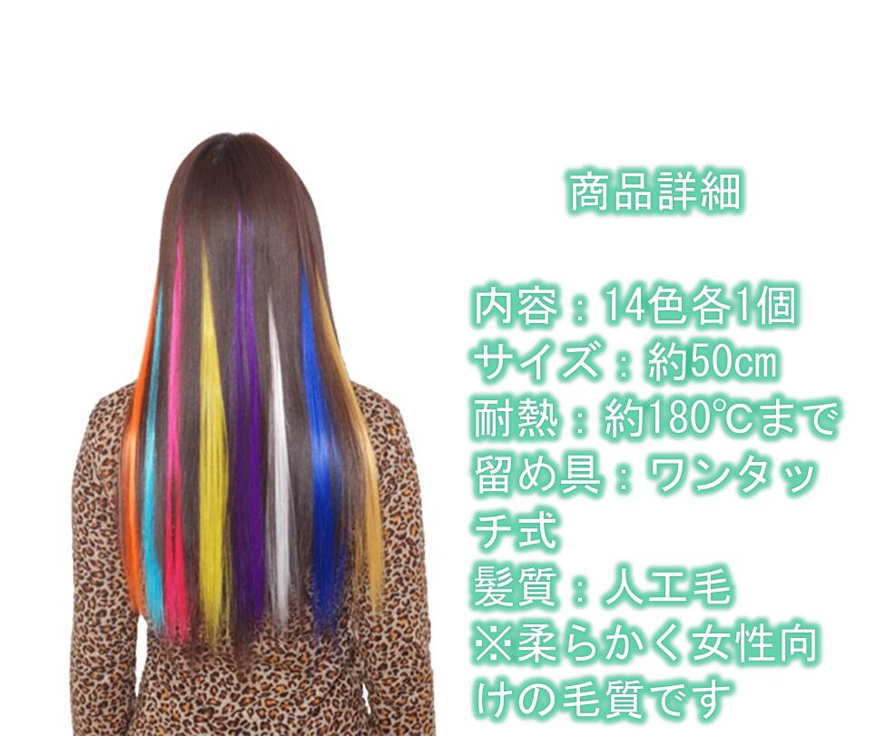 メッシュ ワンタッチ エクステ カラフル 14本セット エクステンション つけ毛 コスプレ イメチェン