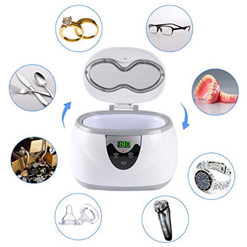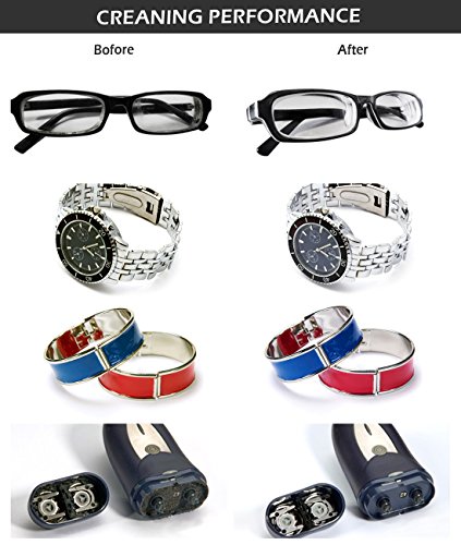 - Ultrasonic Cleaner produces 40kHz ultrasonic sound waves to deeply clean hard-to-reach area of your valuables, keep them looking like new. Great to clean jewellery, bracelet, necklace, eyeglasses, and watches,CDs,DVDs,lenses and other optical parts, dental, coins, utensils
