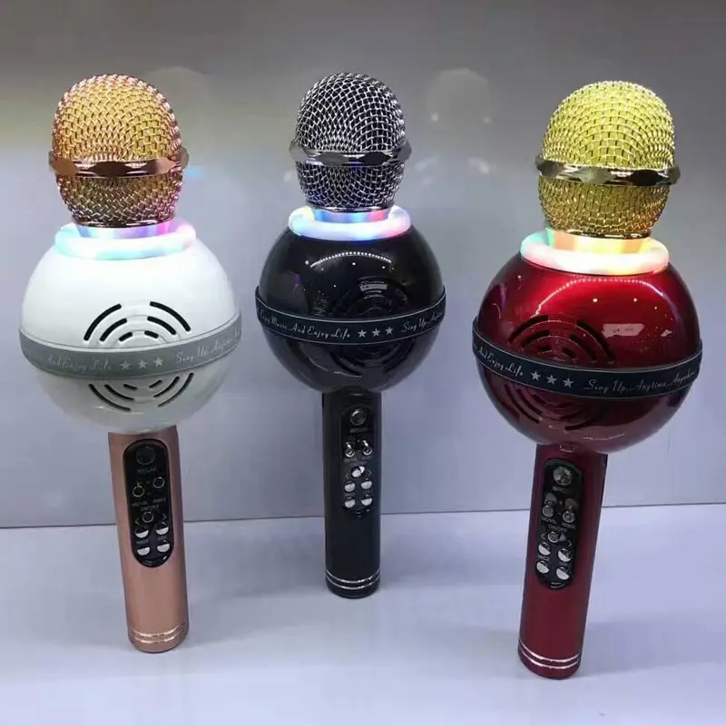 bluetooth microphone with led light colorful live mobile sing KTV K song stereo bluetooth microphone for SmartPhones WS878