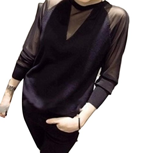 -. Title : Tootess ファッションスプライシングメッシュロングスリーブプルオーバーの女性カジュアルティー