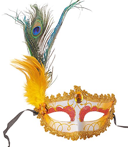 -. Feature : Material: Plastic / Size: 19 * 9cm; Feather Length: 25cm / Gender: Unisex / Build intrigue around your hidden identity with this elegant mask / Perfect for masquerades, balls, costume parties, carnivals, Mardi Gras and more interesting.