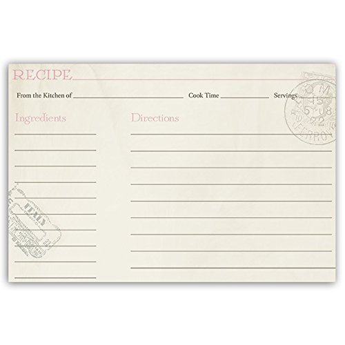 Recipe Cards, Italian, Passport, Bistro, Rome, Vintage, Retro, Bridal Shower, Italy, Wedding, Housewarming, Gift, Pink, Double Sided, with Lines, Size 4 x 6, Set of 24 Printed, That's Amore
