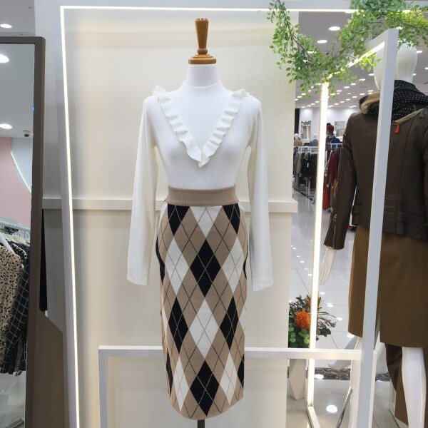 <케어라벨에 표기된 사이즈와 실측 사이즈는 다를 수 있습니다.>아가일 프린팅의 롱 스커트입니다:)롱한 기장과 감각적인 아가일 프린팅으로 심플한 상의와 매칭하셨을 때 더욱 좋으며 특히 비슷한 색 계열의 니트와 니트조끼에 환상적인 궁합을 자랑합니다. 몸의 라인이 크게 드러나지 않기 때문에 부답없이 착용하실 수 있어요~