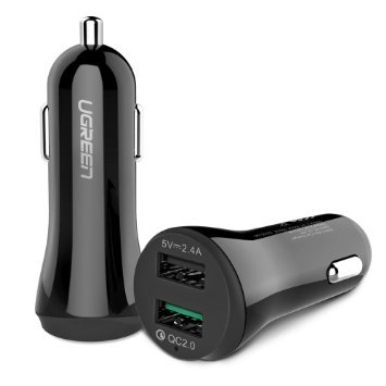 Quick Charge 2.0, Ugreen USB Car Charger Dual Ports 30W with Qualcomm QC 2.0 Charging Technology (Black)