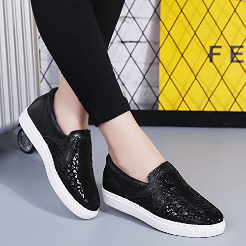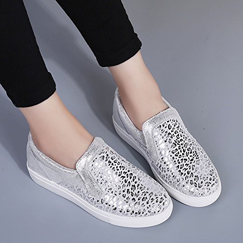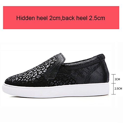 Binding : Apparel Product Description Size Tips 1.It is NOT standard US size. 2. If feet wide or fat,please choose as one size big. 4.Please read following size information before ordering. Size Information US Size 5=CN Size 35,for feet length 8.70"-8.86" (22.1-22.5 cm)(heel to toe) US Size 5.5=CN Size 36,for feet length 8.90"-9.06" (22.6-23 cm)(heel to toe) US Size 6=CN Size 37,for feet length 9.09"-9.25" (23.1-23.5 cm)(heel to toe) US Size 6.5=CN Size 38,for feet length 9.29"-9.45" (23.6-24 cm)(heel to toe) US Size 7=CN Size 39,for feet length 9.49-9.65" (24.1-24.5 cm)(heel to toe) US Size 7.5=CN Size 40,for feet length 9.69"-9.84" (24.6-25 cm)(heel to toe) EnllerviiD Women Slip On Hidden Heel Platform Loafers Fashion Leopard Wedges Sneakers EnllerviiD slip on hidden heel wedges sneakers is a fashion style for all season. Special leopard pattern make the difference. Easy pull on round toe,convenient lazy design. Stylish 0.78inches wedge hidden heel give you height support and bring you more confidence. Anti-slip rubber sole,comfortable to wear all day. It is easy to match any tops, skirts, jeans,pants. Warm Prompt 1.The actual color of the shoes maybe different from the picture shown due to the different screen of display or reflecting light when shooting 2.1 to 2cm error of measuring is a reasonable range due to different measurment methods 3.It's can't avoidable that you will receive the shoes with some smells from original material as it's new. 0