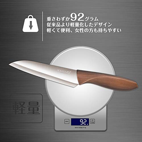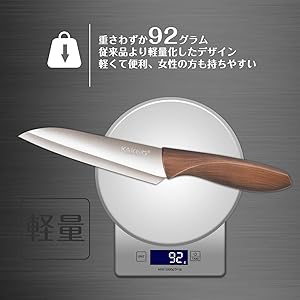 約92グラムとビックリするほど軽くて、よく切れて、小振りで扱いやすい、新発売の包丁です。
