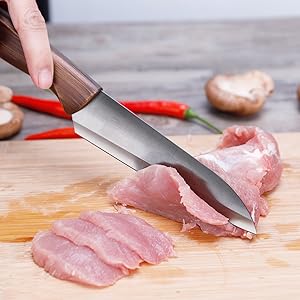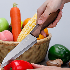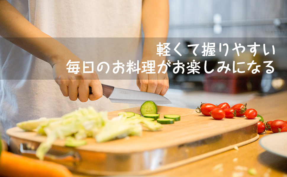 持ちやすさを考慮して、女性にも握りやすく使いやすいデザインになっています。三徳包丁は超軽量で、硬いものを切ったり長時間調理しても楽しいです。