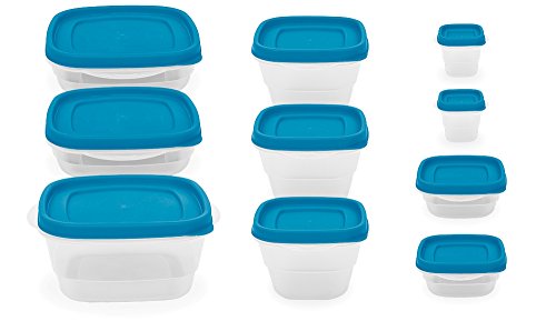 20 Pc Reusable Plastic Food Storage Containers - Lunch Boxes w/ Air Tight Lids (Blue)