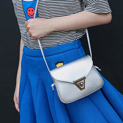Features - Color: Silver - Material: PU leather - Size: about 17 x 13 x 5cm/ 6.7 x 5.1 x 1.96 inch (LxWxH) - Suitable for girls and women to use. Perfect for daily or travel use. - Adjustable shoulder strap for comfortable wearing. Heavily-duty strap with elaborate craftsmanship for strong durability. - High quality PU leather. Anti-scratch and wear resistance, waterproof and weather-resistant. Smooth surface offers extreme soft touch. - Large capacity with multiple bags. Enough room for holding daily stuff like phone, wallet, cosmetics and other items. - Multi-function. Acts as a crossbody bag, single-shoulder bag, handbag, etc.