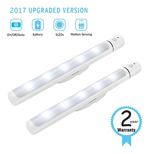 Closet Light LED Motion Sensor Night Light Under Cabinet Lighting Battery Powered Automatic Wireless Stick On Anywhere Wall Lamp Flashlight All In One White(2 Pack)