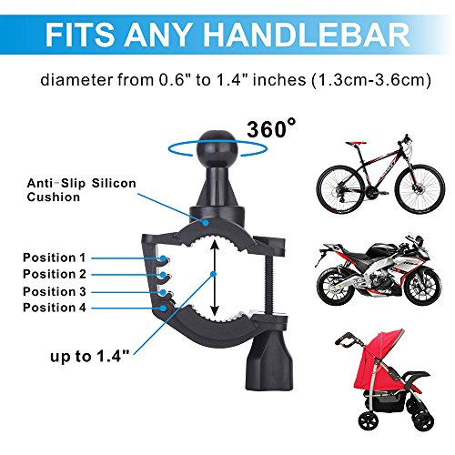 ✓ UNIVERSAL PHONE MOUNT automatically fits any smart phone and device up to 3.7" wide and fits motorcycle and bicycle handlebars 0.6" to 1.4" diameter. Holds iPhone 7, iPhone 7 Plus, iPhone 6, iPod Touch, Samsung Galaxy S7,S6 S5 S4, Note 3, Note 4,Note 5,Note 6,Note 7, LG G4 G5 HTC One Nokia Lumia Google Nexus Sony Xperia GPS, Blackberry z10, MX2 3, Motorola Droid RAZR / MAXX, HTC EVO 4G, HTC One X, LG Revolution, GPS Holder and More!