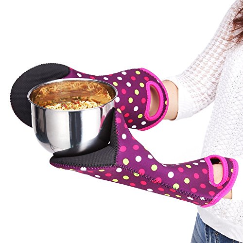 - KITCHEN Mits MATERIAL AND DIMENSION:Made with 100% neoprene outer layer,PVC-free, BPA-free, latex-free and vinyl-free,right or left handed use.12 inches long length to protect the forearms,light enough,only 0.165kg per pair.
