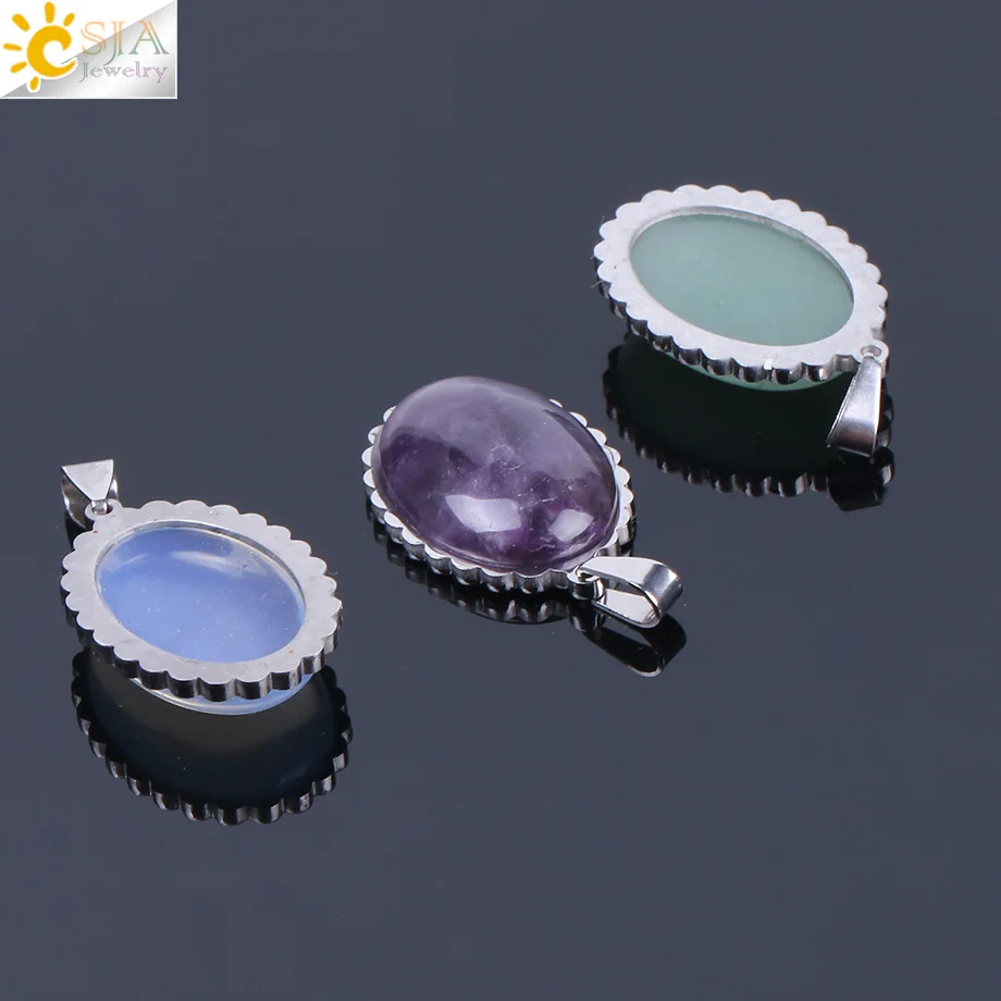 Necklace Pendant Feature:Oval Shape + Stainless Steel Metal + Flat Back Beads + Serrated