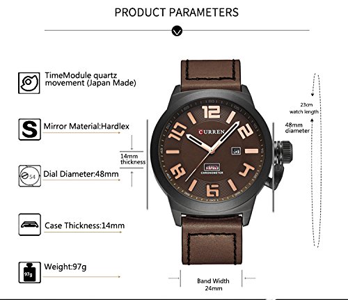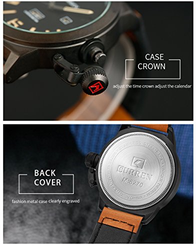 -. Feature : ★ IMPORTED / ★ LUXURY CASUAL DESIGN: The enlarged time number and two colors display add a sense of design to your dial. A variety of color watchband for you to choose. / ★ EXTRAORDINARY TEMPERAMENT: as a good gift ,or joining evening party, wedding, dating and other business or casual occasions; as a gift to someone you love, also can be worn in outdoor sports like hiking, biking, running to see the time. / ★ AFTER-SALES: We are committed to providing the best products and services to our customers. If you have any questions, please contact us in time. We will try our best to make you satisfied.Our product warranty for lifetime. / ★ MATERIAL: Stainless steel water proof case. wear-resistant and hardlex mirror. Leather band and has multiple hole sizes to choose from. Japanese quartz movement provides precise and accurate time keeping, Date calendar and analog display