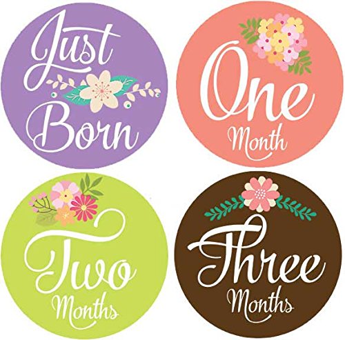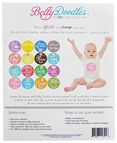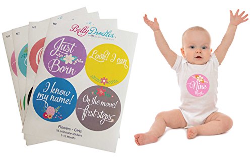 Belly Doodles 16 Baby Monthly Stickers Girl Milestone Flowers 3.94inch (1-12 Months)