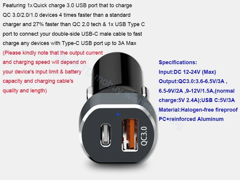 Output(QC 3.0)Max:3.6-6.5V/3A ,6.5-9V/2A ,9-12V/1.5A,5V 2.4A when normal charging
