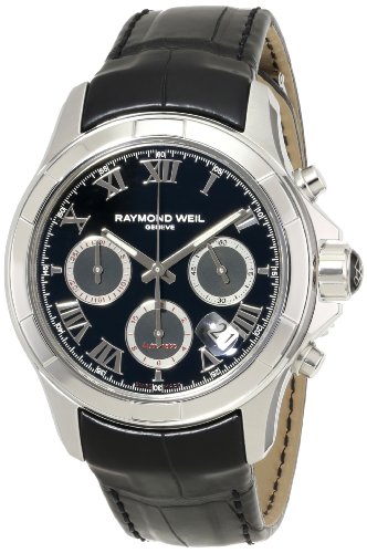 -. Binding : Watch -. Brand : Raymond Weil -. Color : Black -. Department : mens -. EAN : 0762115017082 -. Feature : Round dress watch with black leather band featuring black dial with three chronograph subdials and date window between four and five o'clock / Swiss-automatic movement with analog display / Protective antireflective-sapphire crystal dial window / Features fold-over-clasp closure / Water resistant to 330 feet (100 M): suitable for snorkeling, as well as swimming, but not diving -. Label : Raymond Weil -. Manufacturer : Raymond Weil -. Model : 7260-STC-00208 -. MPN : 7260-STC-00208 -. PackageQuantity : 1 -. PartNumber : 7260-STC-00208 -. ProductGroup : Watch -. ProductTypeName : WATCH -. Publisher : Raymond Weil -. ReleaseDate : 2013-12-12 -. Size : Standard -. Studio : Raymond Weil -. Title : Raymond Weil Men's 7260-STC-00208 "Parsifal" Stainless Steel Watch with Black Leather Band -. UPC : 762115017082