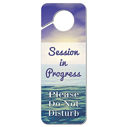 Session in Progress Please Do Not Disturb Plastic Door Knob Hanger Warning Room Sign - Pastel Ocean Sunset