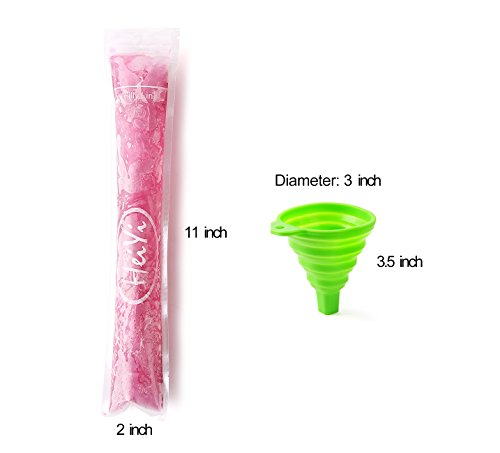 - PERFECT SIZE– These ice pop bags is 2 inch wide, 11 inch long, it come with 100 popsicle molds, 1 funnel per package