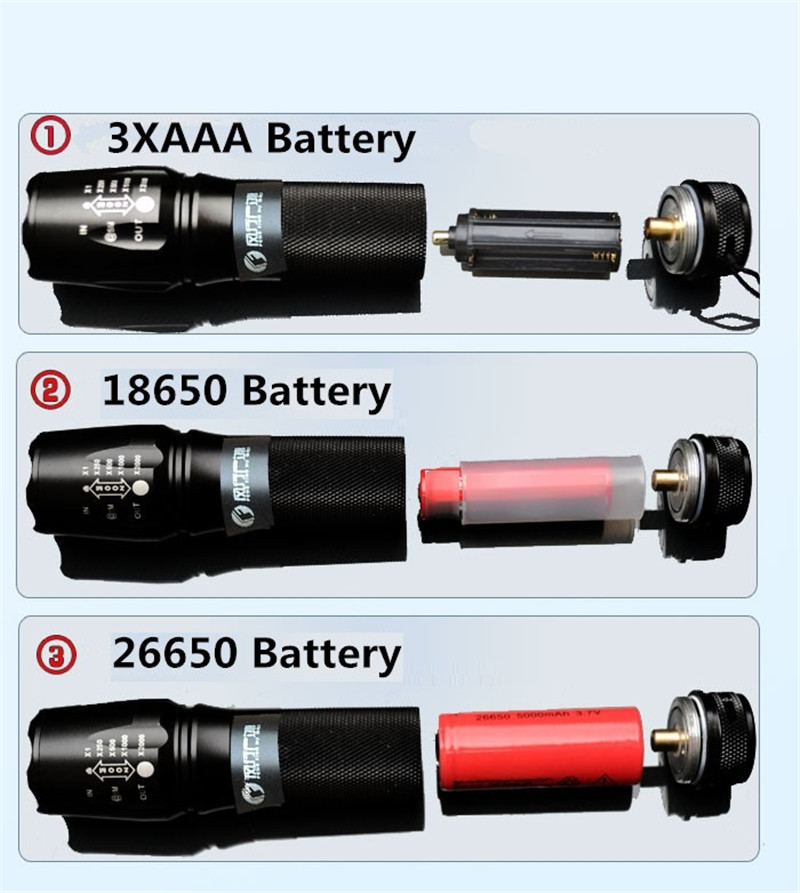 Battery type: 3*AAA or 1*18650 battery(Not included)