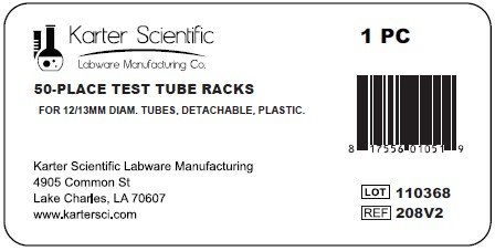 Karter Scientific 208V2 Plastic Test Tube Rack for 12/13mm Tubes, Holds 50, Detachable