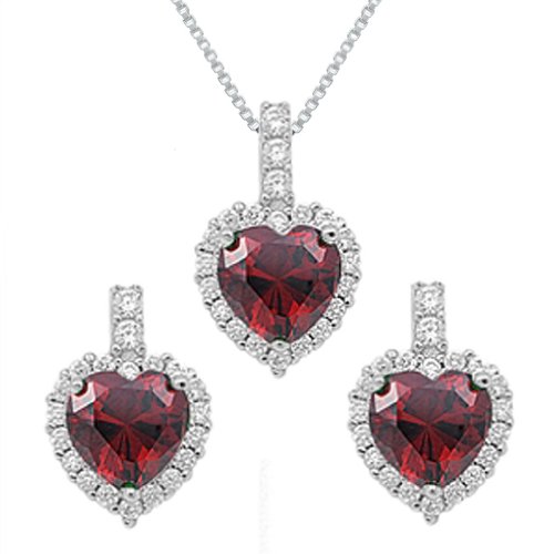-. Title : Sterling Silver Simulated Red Garnet Heart Necklace and Earrings Set