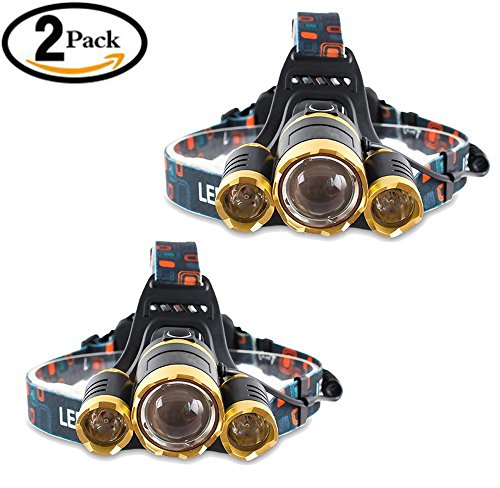 2 Pack Brightest LED Headlamp 6000 Lumen flashlight - IMPROVED LED, Rechargeable 18650 headlight flashlights, Waterproof Hard Hat Light, Lumen Bright Head Lights, Running or Camping headlamps
