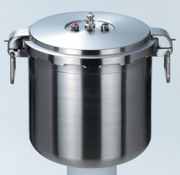| 業務用圧力鍋。焦げ付きにくい底三層構造で、200V電磁調理器にも使えます。 |