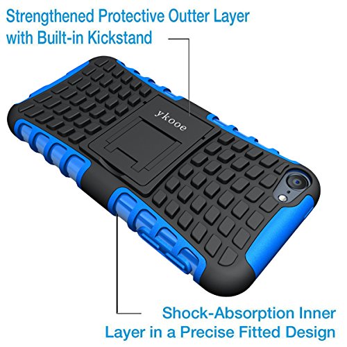 iPod Touch 5 Case,Touch 6 Case,ykooe Heavy Duty Protective Cover Dual Layer Hybrid Shockproof Protective Case With Stand for Apple iPod Touch 5 6
