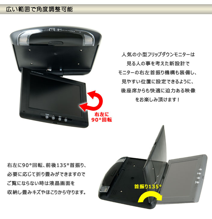 ●小型車から普通車までにマッチする10.2インチタイプのフリップダウンモニターです。