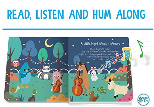 EASY, FUN, GREAT TO HUM ALONG: Read, listen, and hum along as Ditty Bird plays your favorite classical music materspieces. The electronic push button on every spread triggers one of the six much-loves masterpieces. The beautiful and colourful images will hold your baby's attention even longer. Includes: Mozart, Beethoven, Chopin and Vivaldi.