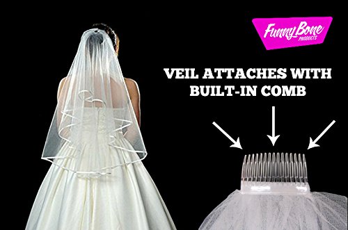 QUALITY - The lace sash has EMBROIDERED black lettering and is made to last any event you want to throw at it! The Veil is made from durable white mesh which has a sewn edge with sewn attached plastic comb