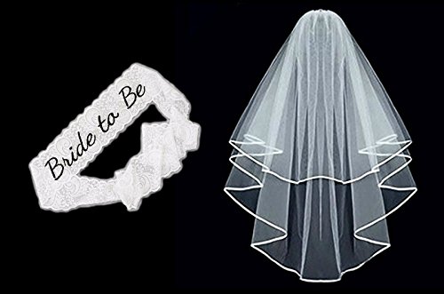 TWO PIECE SET - includes one white veil and one white bride to be sash (white with black lettering)