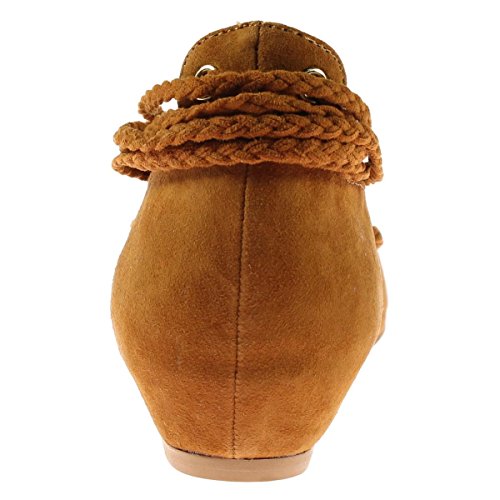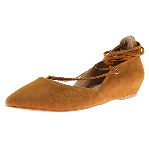 Product DescriptionSuede laced up pointed toe flats with tassels that finish the braided ties0