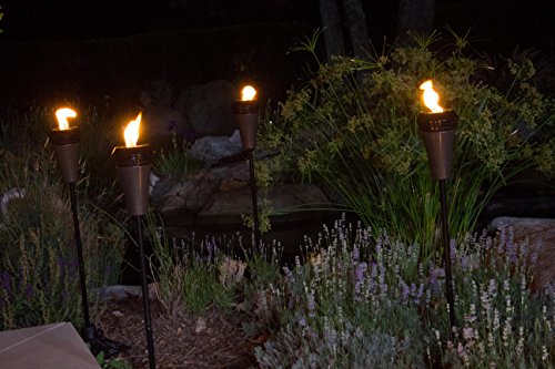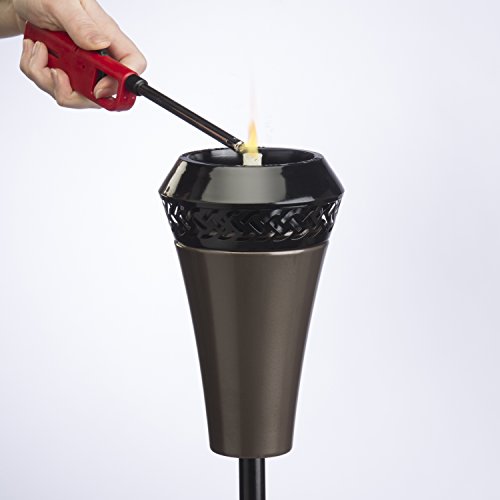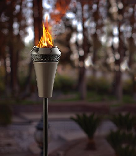 If you spend as much time living and entertaining outdoors as indoors, then adding the ambience of natural flame lighting with the Island King Large Flame Torch to your outdoor living room will make your summertime gatherings even more enjoyable. The Island King Torch features a unique design that results in a flame that’s five times larger than traditional torches. The uniquely designed torch bowl keeps the flame burning big and bright, even in the wind. It has a weather-resistant gunmetal finish and comes with an easy-to-assemble four-piece pole. With its Twist & Pour technology, you simply twist the top to expose the fill hole, pour your fuel, and then twist to close, providing quicker refills and less mess. It also comes with an attached magnetic metal snuffer to help extinguish flames and cover the wick when not in use. Use with TIKI Brand Torch Fuel and enjoy up to five hours of burn time with each 16-ounce fill. The TIKI Brand Island King Torch stands 66 inches tall.Feature