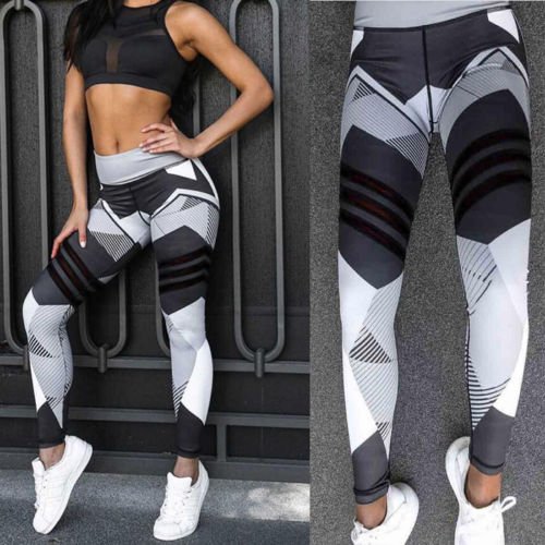 -. Title : CROSS1946 Sexy Women's Striped Geometry Yoga Pants Power Flex Mesh Leggings Workout Trousers