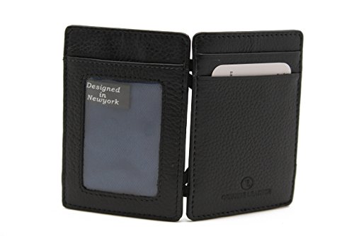 -. Binding : Apparel -. Brand : Juzar Tapal Collection -. Color : Black -. Department : mens -. Feature : Dimensions: 2.75 X 4'.0 inches / 3 Credit Card Slot including window ID / YL Genuine Pebble Leather / Center Rubber Elastic to Hold bill by Magic / Made in India -. IsAdultProduct : 0 -. Model : JTC-51-3283 -. ProductGroup : Apparel -. ProductTypeName : ACCESSORY -. Size : Small -. Title : Genuine Leather Magic Bifold Wallet Front Pocket Card,Cash Holder Student Window ID