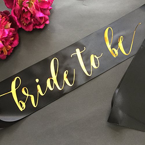 Black Bride to Be Bachelorette Party Sash with Gold Mirror Ink