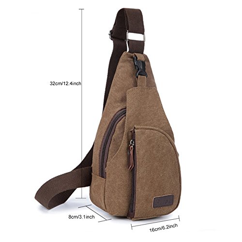 -. Feature : Type: Men's Sling Bag / Material: Canvas ; Closure Type: Zipper ; Pattern Type: Solid / Size(Height x Width x Thickness): 32cm x 16cm x 8cm/12.60" x 6.30" x 3.15" (Approx.) / Features: Sport Bag, Messenger Cross Body, Durable, Plain Design / Very good for holding wallet/cellphone/keys in outdoor activities.