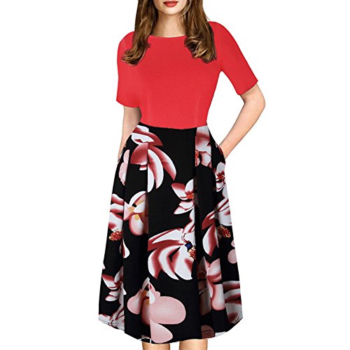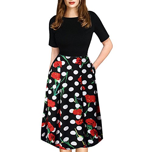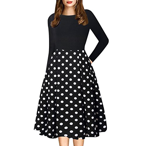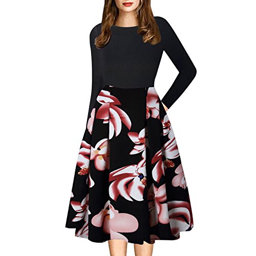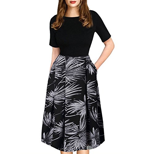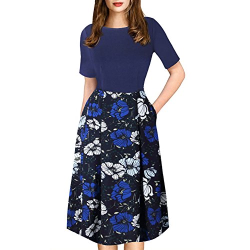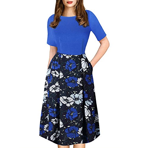 Features:Crew Neck,Short and Long Sleeve Optional.Hidden Zipper At The Back,Patchwork/Fit And Flare Work Dresses For Women,Super Flattering.Deep Pockets Easily To Keep Your Smartphone /Key or Other Small Items Comfortably