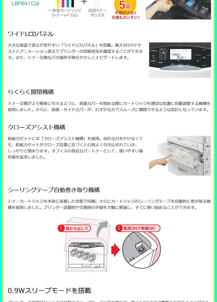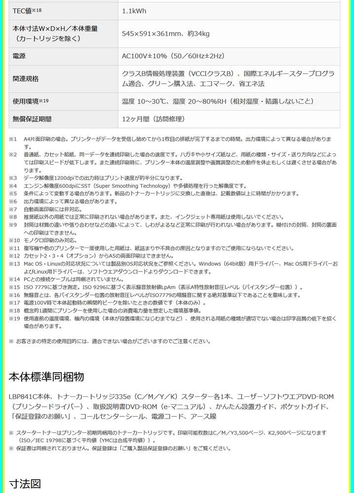 ●おもな付属品:トナーカートリッジ335e(C/M/Y/K)、スターター各1本(装着同梱)、ユーザーソフトウエアDVD-ROM